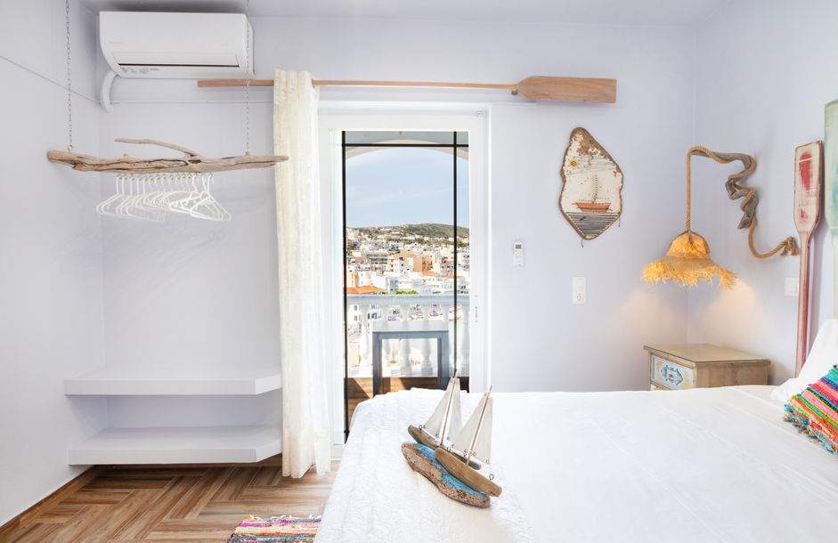 Gorgona Blue apartments' decoration is ispired by the sea and the sun. Fully bright and sunny apartments with navy and sand colors. All the pieces of art in the apartments are handmade.